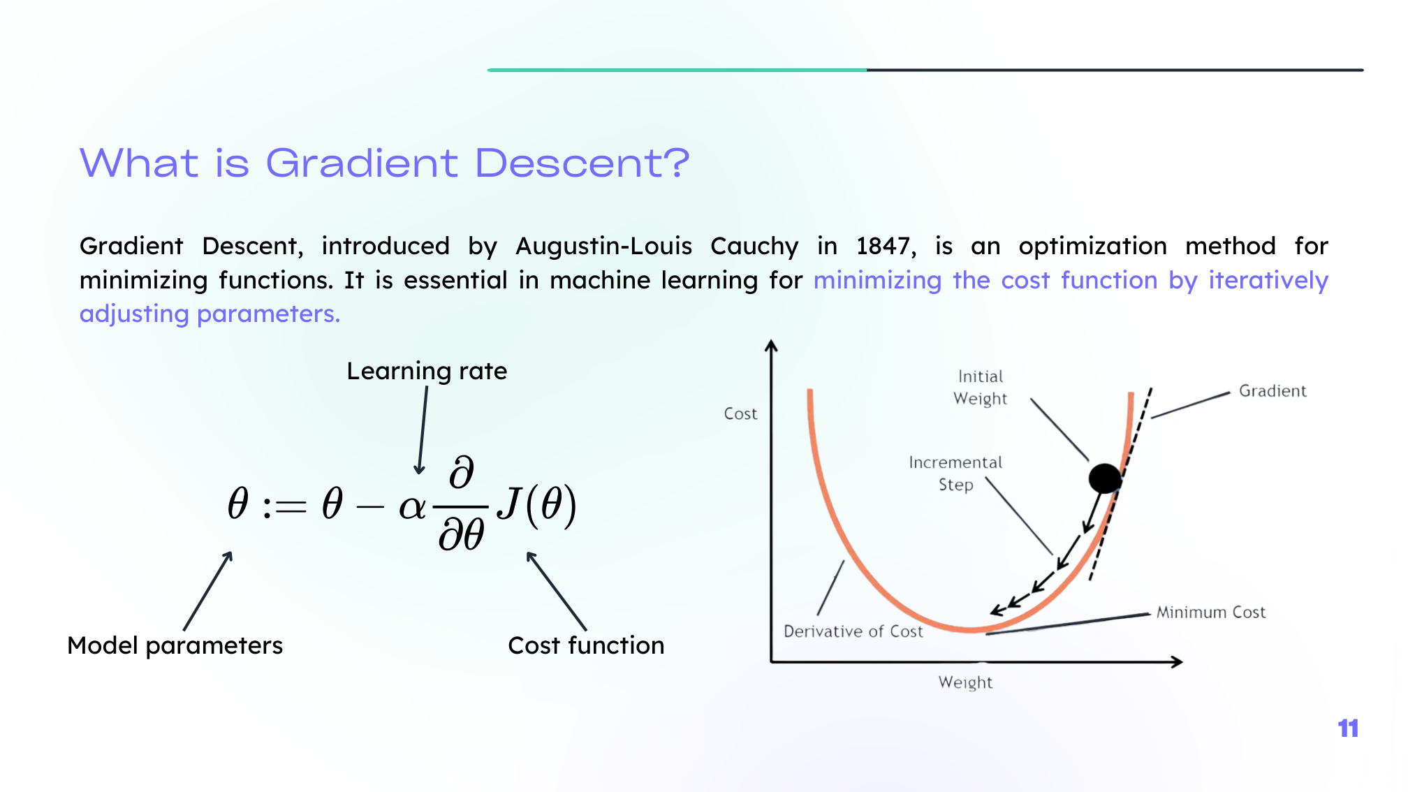 Once the cost is defined, we minimize it by updating parameters in the opposite direction of the gradient: