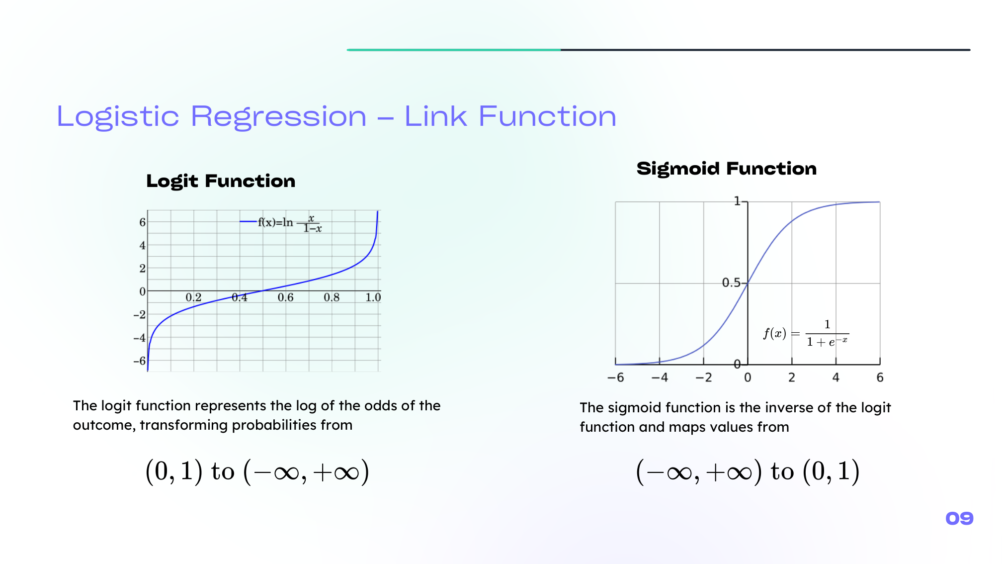 \[ \sigma(z) = \frac{1}{1 + e^{-z}} \]The related logit transform goes in the other direction: