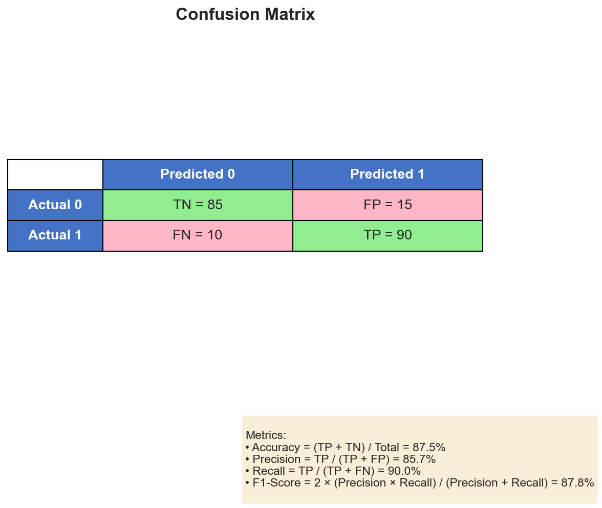 | Actual 0 | TN (True Neg) | FP (False Pos) |