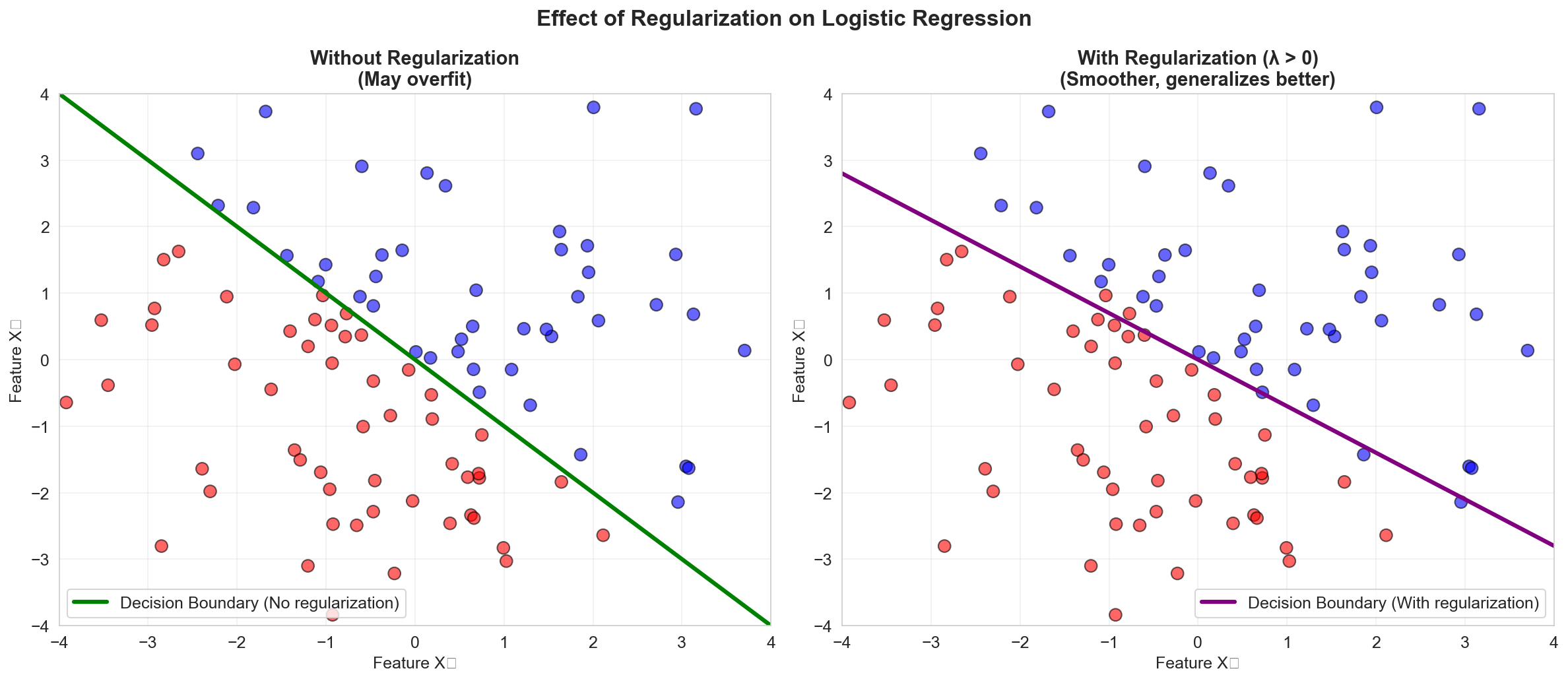 - ✅ Regularization: Ridge and Lasso for logistic regression